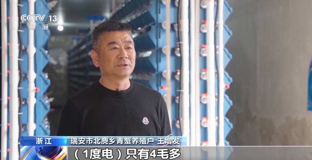 瑞安市北麂乡青蟹养殖户 王增发:绿电引进的话,我们的青蟹养殖成本大幅度的降低了,1度电只有4毛多,以前要9毛多,相差一半多。