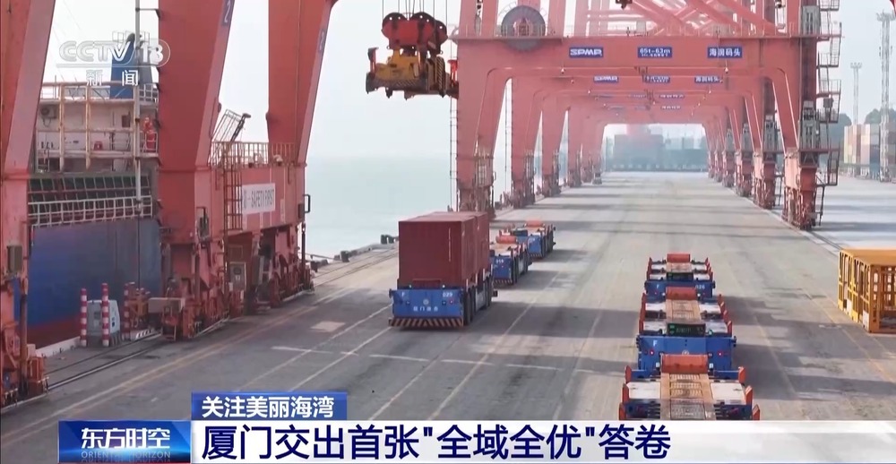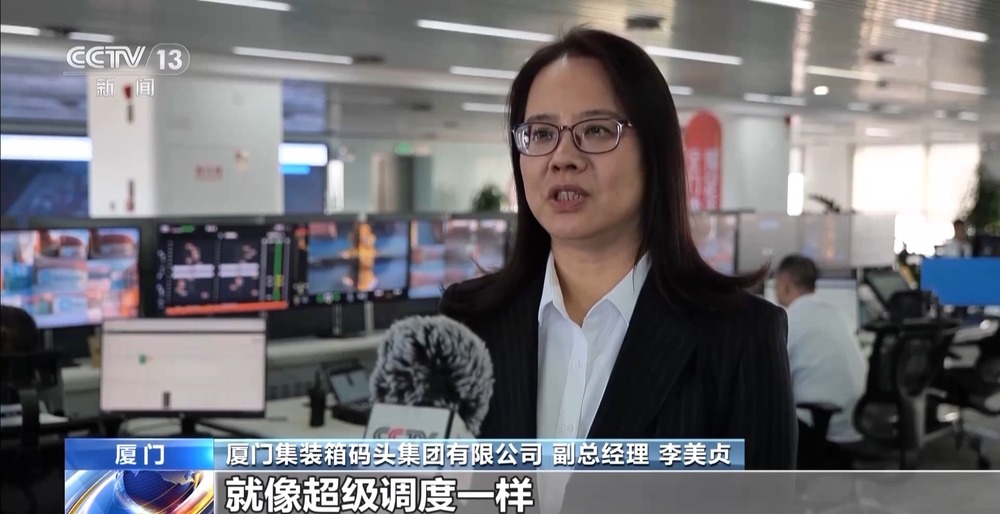 厦门集装箱码头集团有限公司 副总经理 李美贞:“智慧大脑”指挥系统,就像“超级调度”一样,能自动为拖车优化路径,提升码头作业效率,减少不必要的能源消耗和排放。