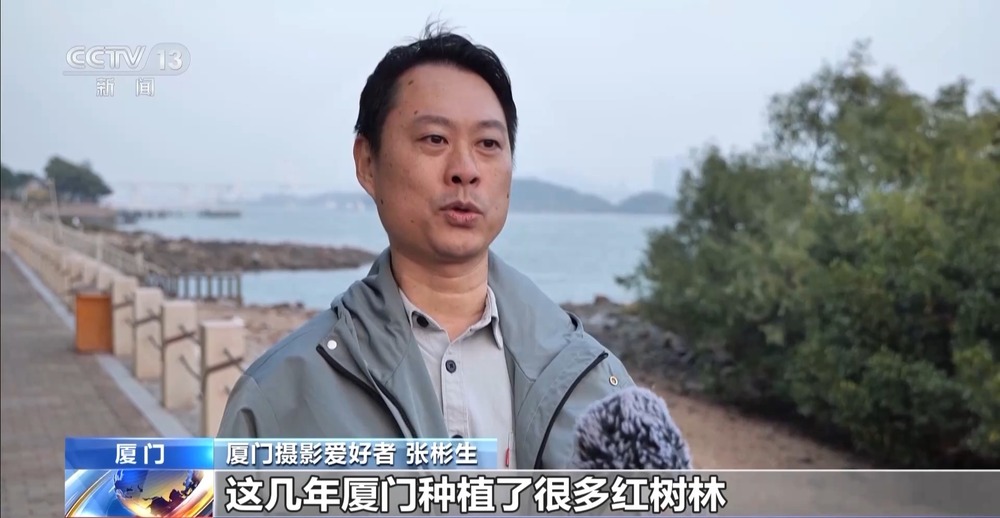 厦门摄影爱好者 张彬生:这几年厦门种植了很多红树林,船只通过保护区都要降速,生态环境慢慢的变好,我也慢慢变得容易拍到它们,有时候还能拍到海豚妈妈带着自己的小崽。我觉得它们应该都是有灵性的,明白我们在用这样的形式来欢迎它们、守护它们。