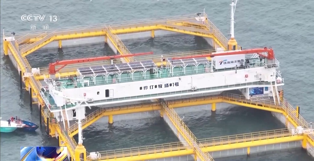 珠海海洋集团 海洋装备研究院安全主管 屈宗辉:整个养殖网箱有6万立方的水体,只需要6到8人就能做到,相较于同样产出的重力式网箱,节约人力成本50%到70%。